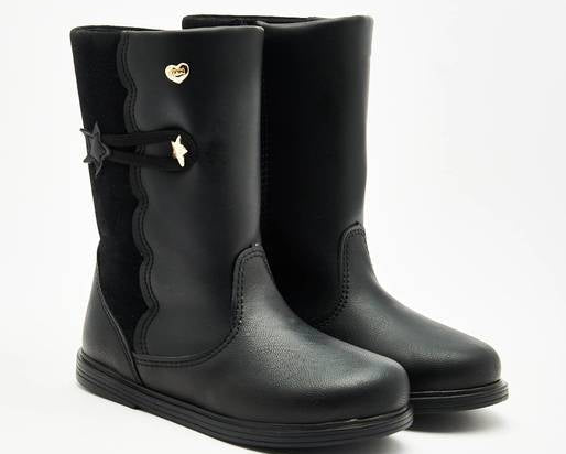 Botín Rock Mini Negro con Detalle de Corazón Rosa