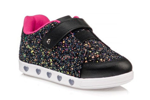 Botín Rock Mini Negro con Detalle de Corazón Rosa
